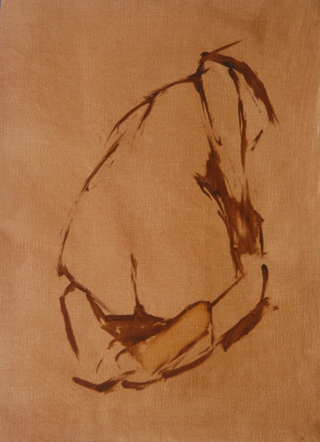 I like Ampersand gessobord and tone it with either burnt umber oil paint, Gamblin Fastematte or acrylic raw sienna depending on how early I prepare. The gesture sketch is on an un-stretched oil-primed linen that I will later mount on acid-free foam core.